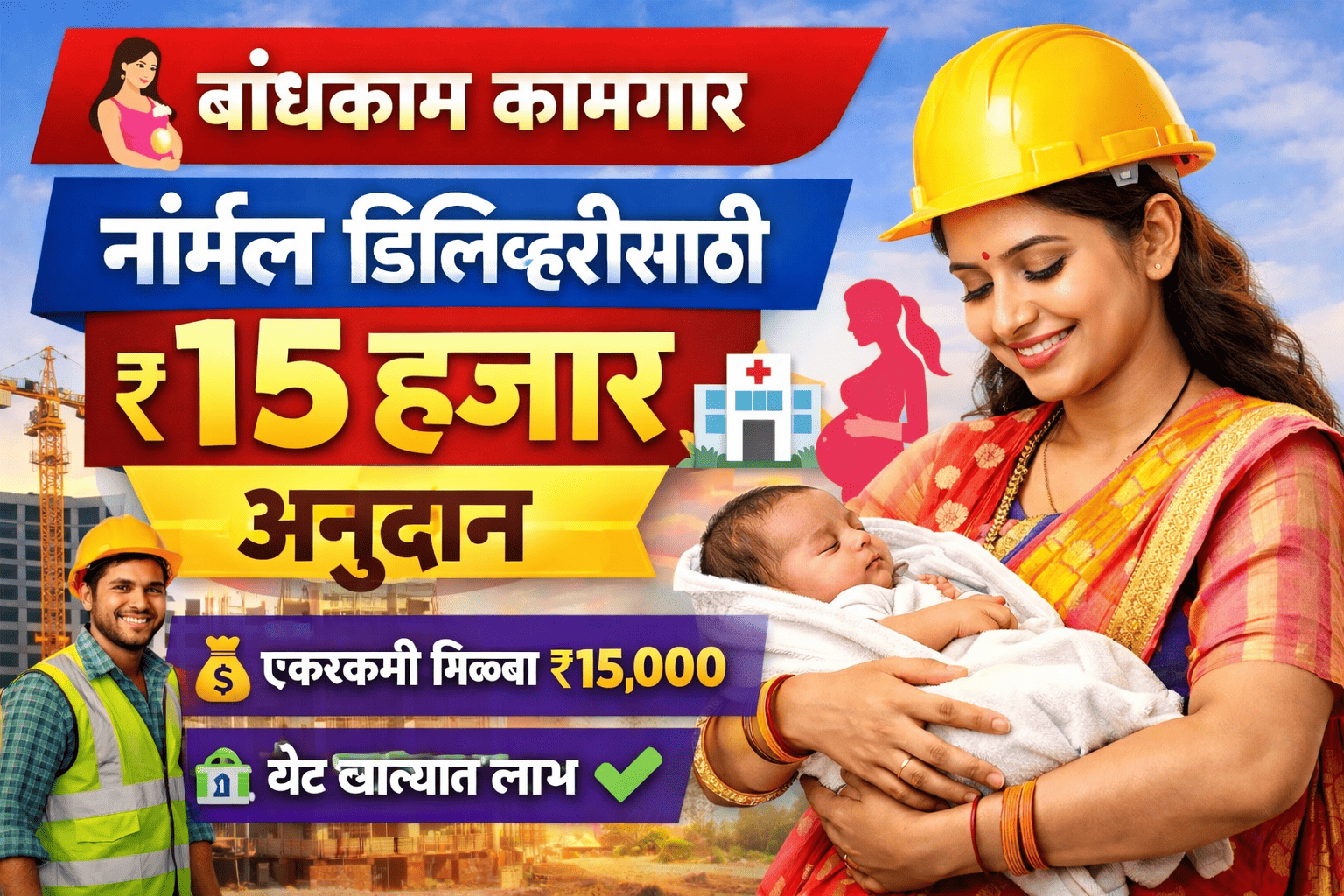 🤱 बांधकाम कामगार महिलांसाठी नॉर्मल डिलिव्हरीसाठी ₹15,000 अनुदान योजना