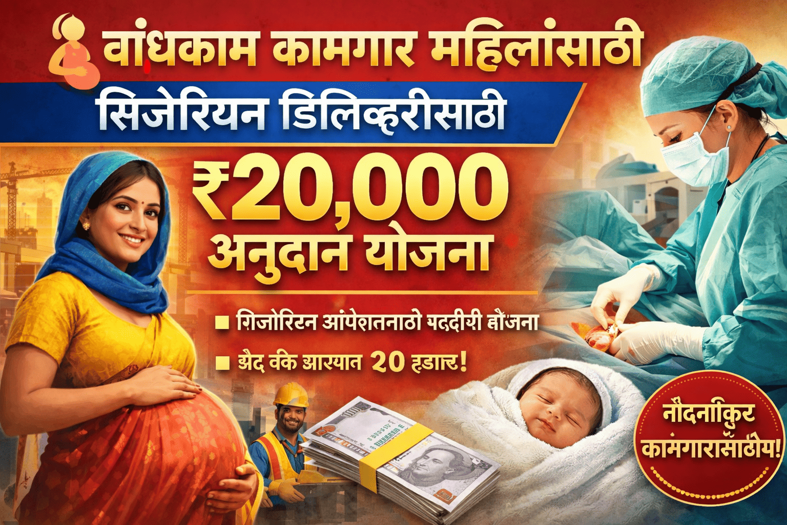 🤰 बांधकाम कामगार महिलांसाठी सिजेरियन डिलिव्हरीसाठी ₹20,000 अनुदान योजना|