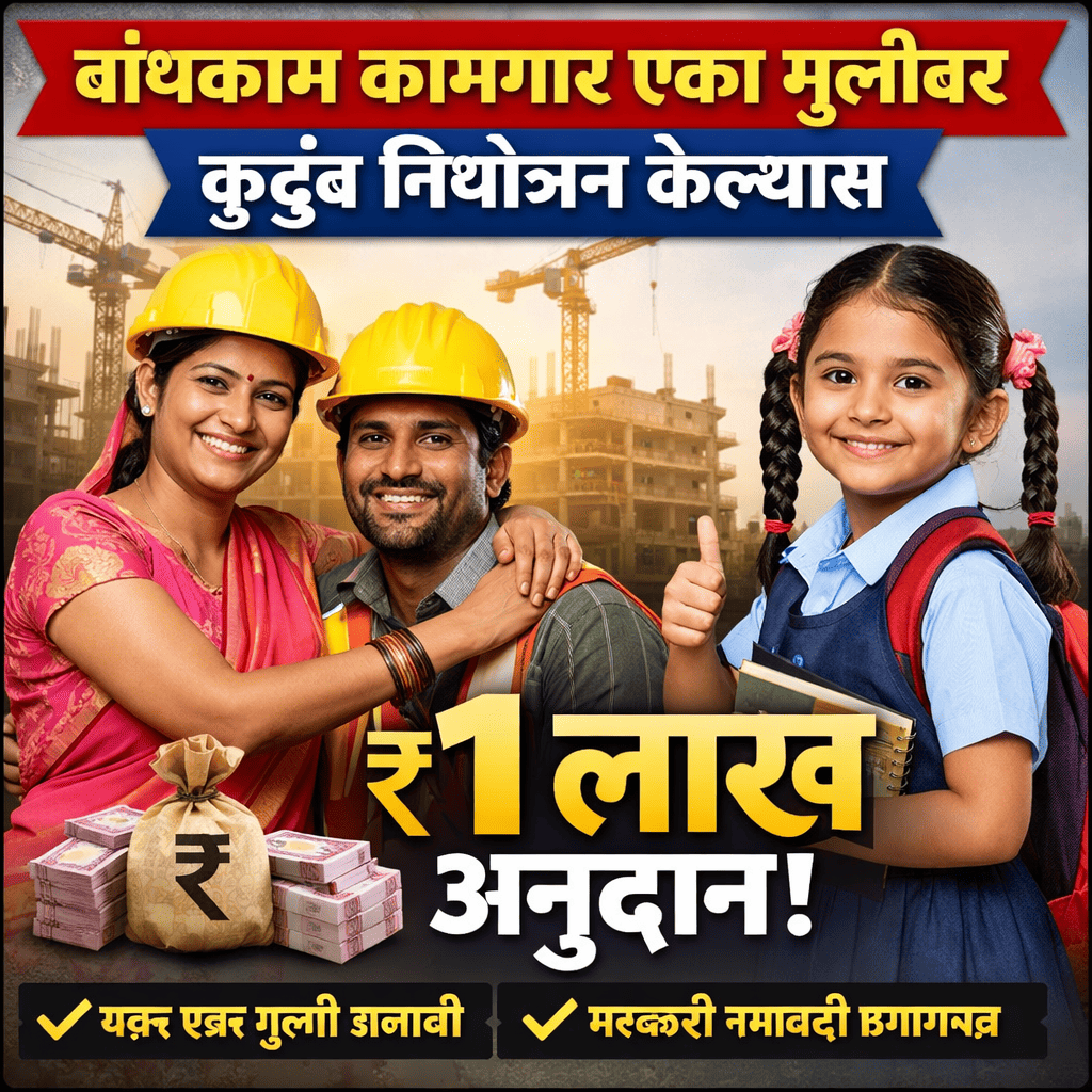 👧 बांधकाम कामगार एका मुलीवर कुटुंब नियोजन केल्यास ₹1 लाख अनुदान योजना|